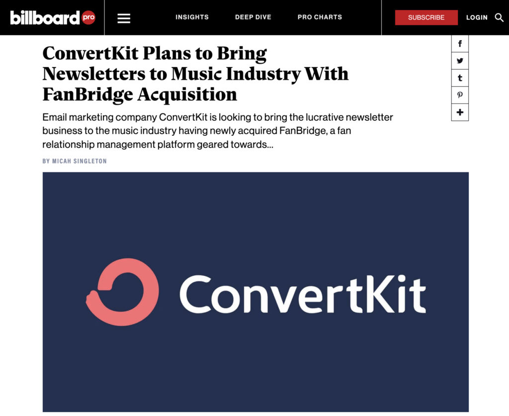 We kicked off the year with an exciting move to acquire FanBridge, the leading email marketing platform for musicians. This was covered by Billboard, brought over thousands of new artists to the platform, and accelerated our growth in the music industry.
