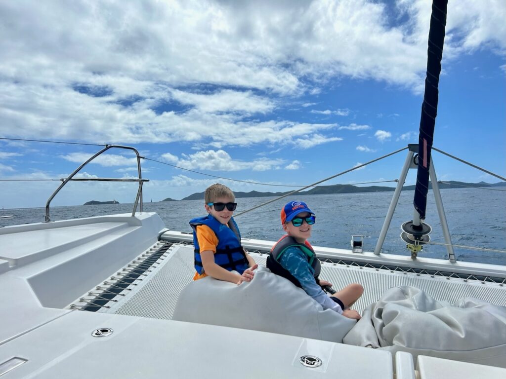 It was a full boat with 5 adults and 6 kids, but we all had a great time. The 50-foot catamarans are definitely a lot larger than the 40- and 45-foot catamarans I’ve sailed before. Overall I found the extra space to be really nice and not too cumbersome to sail.
