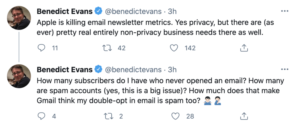 If creators rely on click tracking—the only remaining method of determining engagement—to clean their lists they’ll remove a lot of engaged subscribers who simply consume the emails without clicking through to the web.