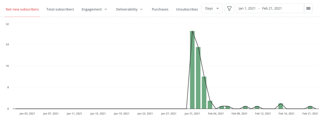 If I was doing this again I would have duplicated our main homepage to send ad traffic to so I could better segment and track those subscribers.