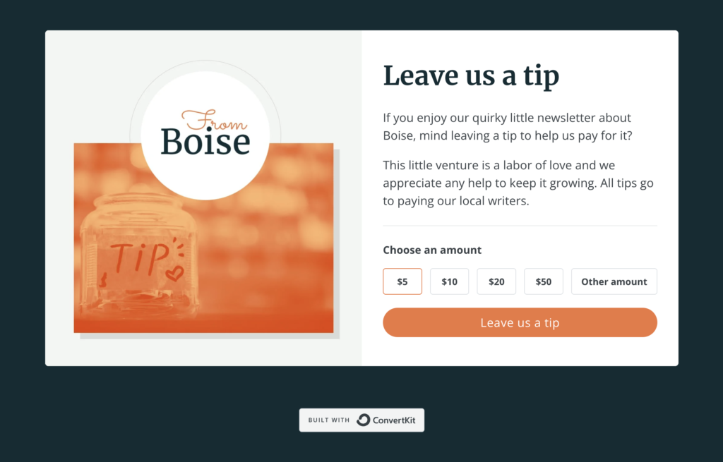 Everything for From Boise is powered by ConvertKit. The website, email newsletter, public blog posts, sponsorships, and automation happens inside ConvertKit. Really the only outside tool we use is Google Apps for running the email accounts and for docs and sheets.