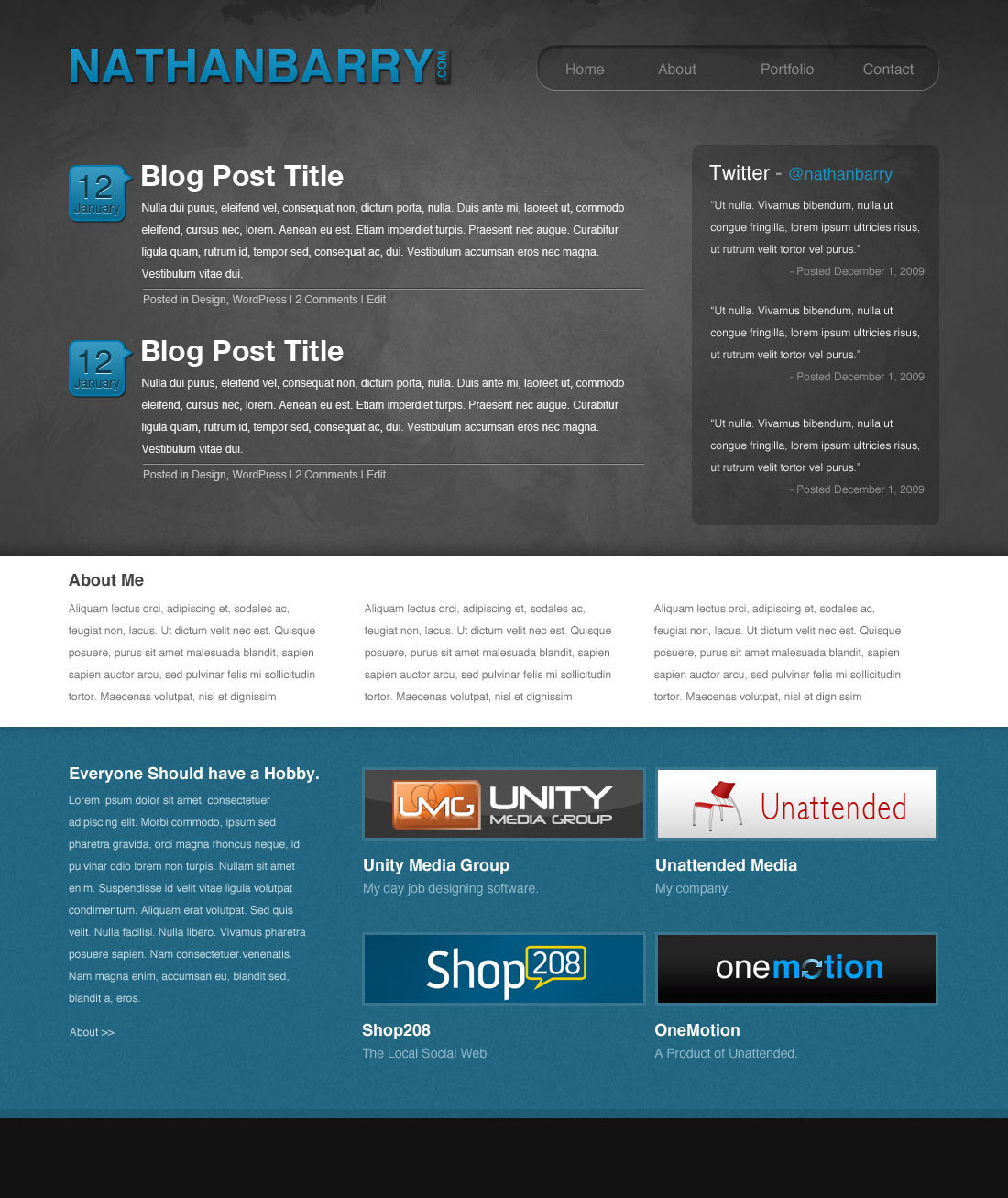 Looks good Nathan, the design is very nice. However, there are some punctuation/grammatical/spelling errors in your “About Me” section.