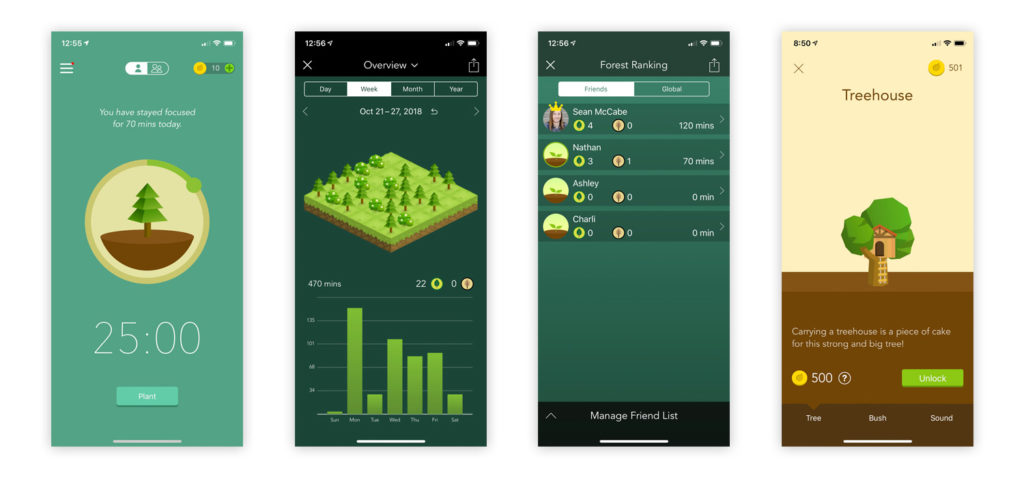 The more focused sessions you have, the more coins you collect. Get to 500 coins and you can unlock new types of trees. I just got a treehouse (obviously).