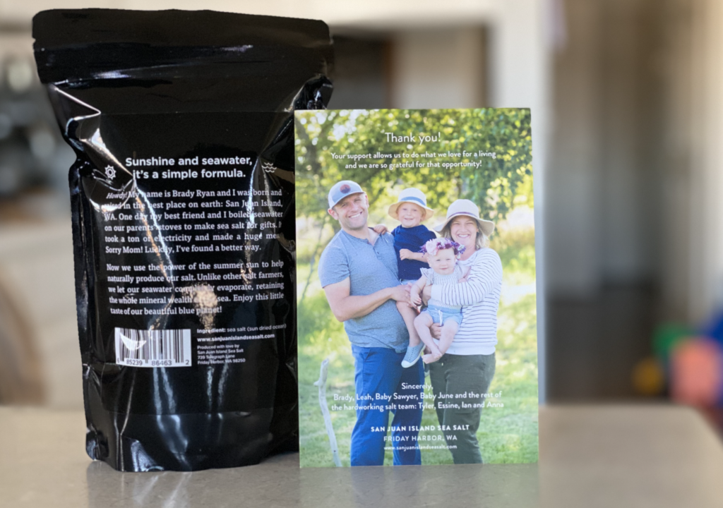 My wife bought salt from San Juan Island Sea Salt, recommended by her friend (and ConvertKit Customer) Shaye Elliott. In addition to delicious salt, we also got a masterclass in storytelling for your business.